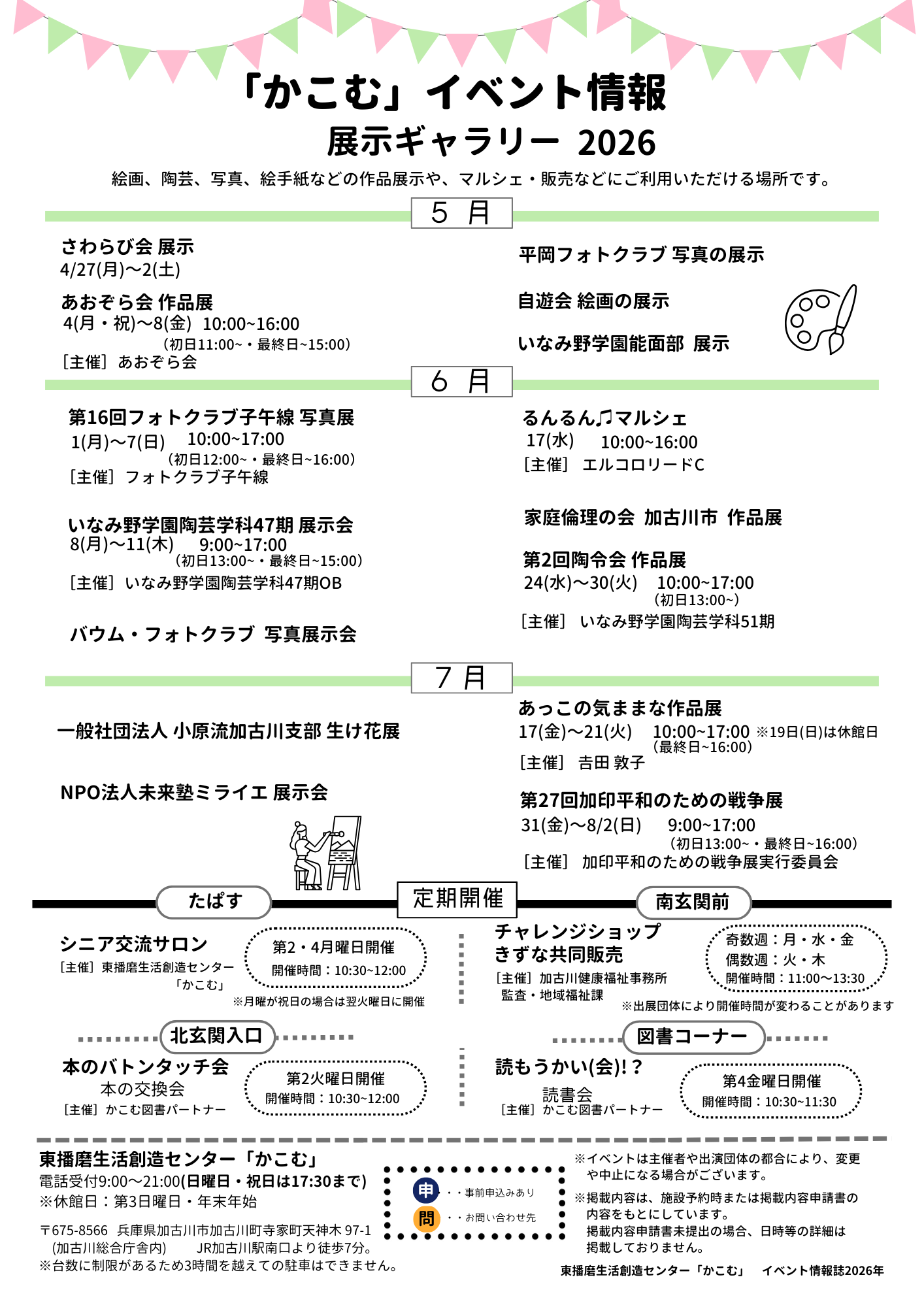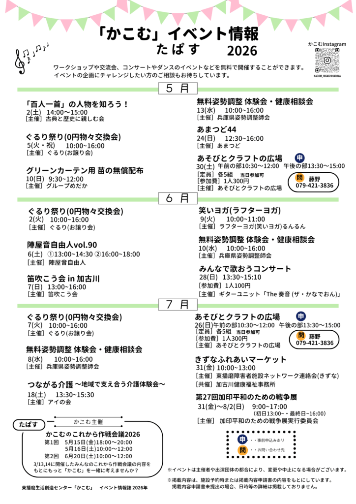 「かこむ」が3カ月に1回発行している、イベント情報紙が完成しました!今回は5月~7月までのたぱすと展示ギャラリーで開催されるイベントを、まとめてチェックできます♪