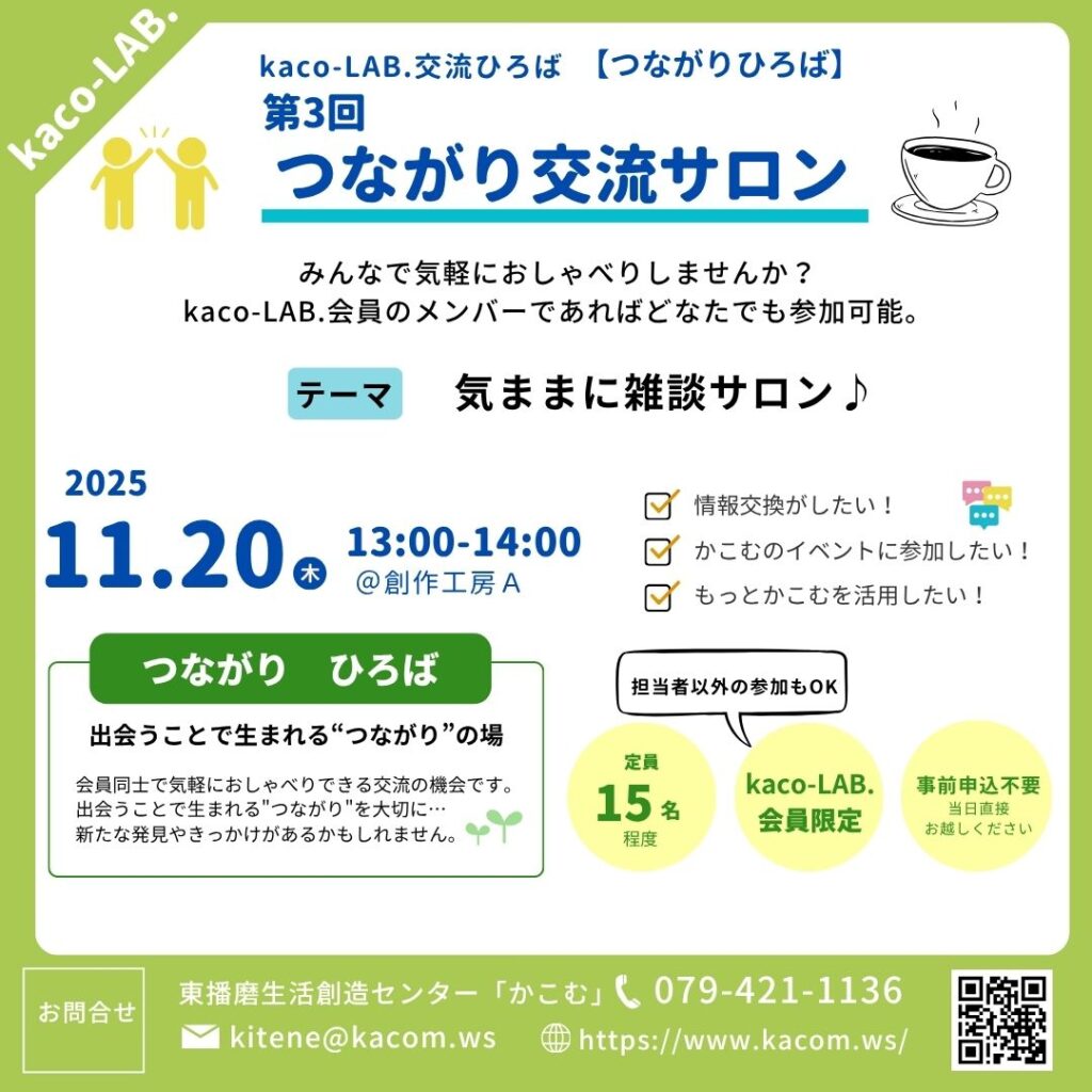 kaco-LAB.会員のみなさんが、気軽に集まってお喋りしながら交流する、つながり交流サロンを開催します!